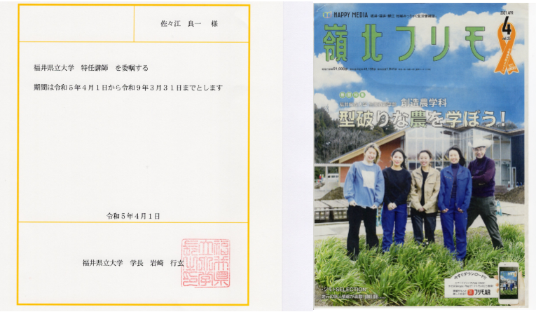 この度、なんと私が福井県立大学(創造農学科)特任講師の委嘱を受けました。任期は4年間(令和5年〜9年)です。